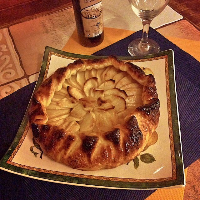 Receta de otoño, elaborada con Dulce de Cabello de Ángel (Calabazas "Cidra") y Manzanas variedad "Reineta", todo ello sobre un hojaldre de mantequilla horneado.